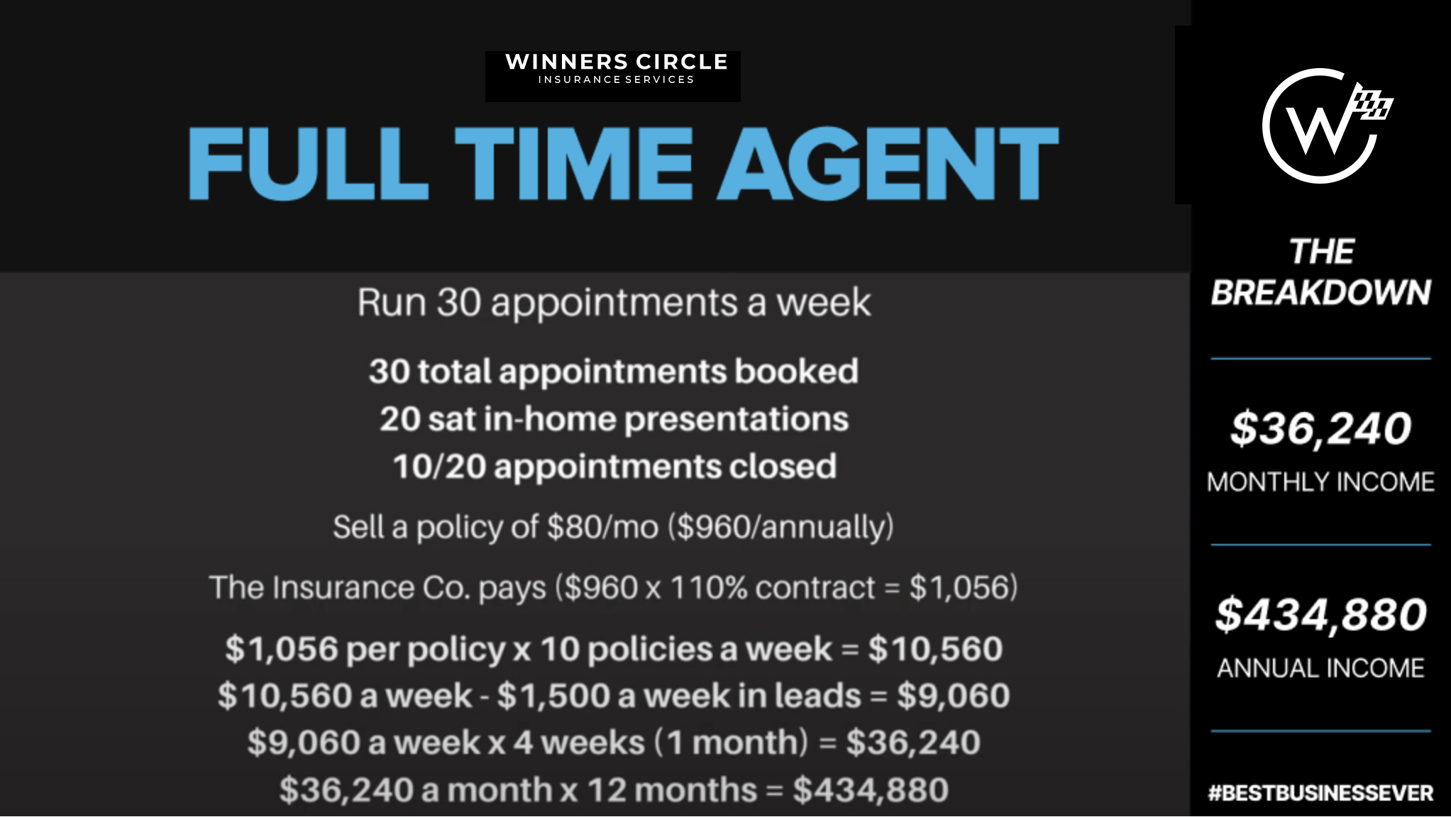Part-time agents: 10-20 appointments per week